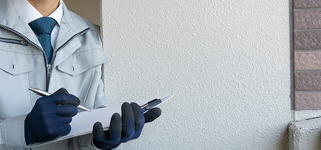 白亜化現象とも呼ばれ、外壁を指でさわった際に白い粉が付くことを言います。雨や紫外線の影響で外壁塗料の中の合成樹脂が分解されたことが原因です。 外壁の経年劣化や不具合を起こしている可能性があるため、早めの対処が必要です。